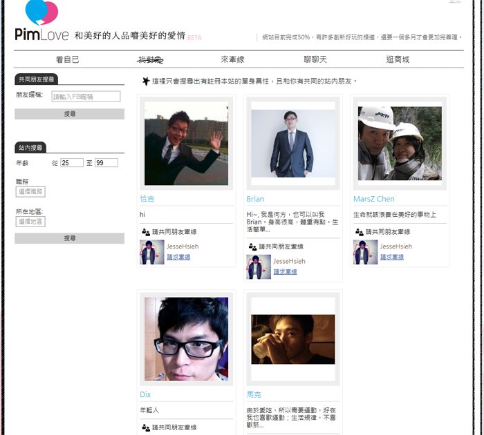 品愛情和一般交友網站不同的是,當你登入時它將彙整你的 Facebook 好友資料,能夠抓取出你在 Facebook 上的單身朋友、或是朋友的單身朋友,進而去做更進一步的認識。杜絕以往線上交友會遇見假的身分帳號、或是必須經過認證等繁雜手續,品愛情此機制的建立,讓會員找單身朋友都是建立在朋友圈的關係當中。有了共同朋友就多了一層誠信關係,你可以經由和朋友打聽對方的人品如何,或是參考朋友意見是否合適更進一步認識。